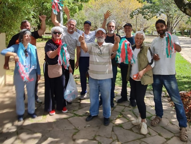 Jogadores e amigos comemorando a finalização do Campeonato de Bocha