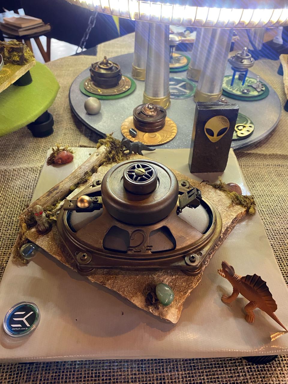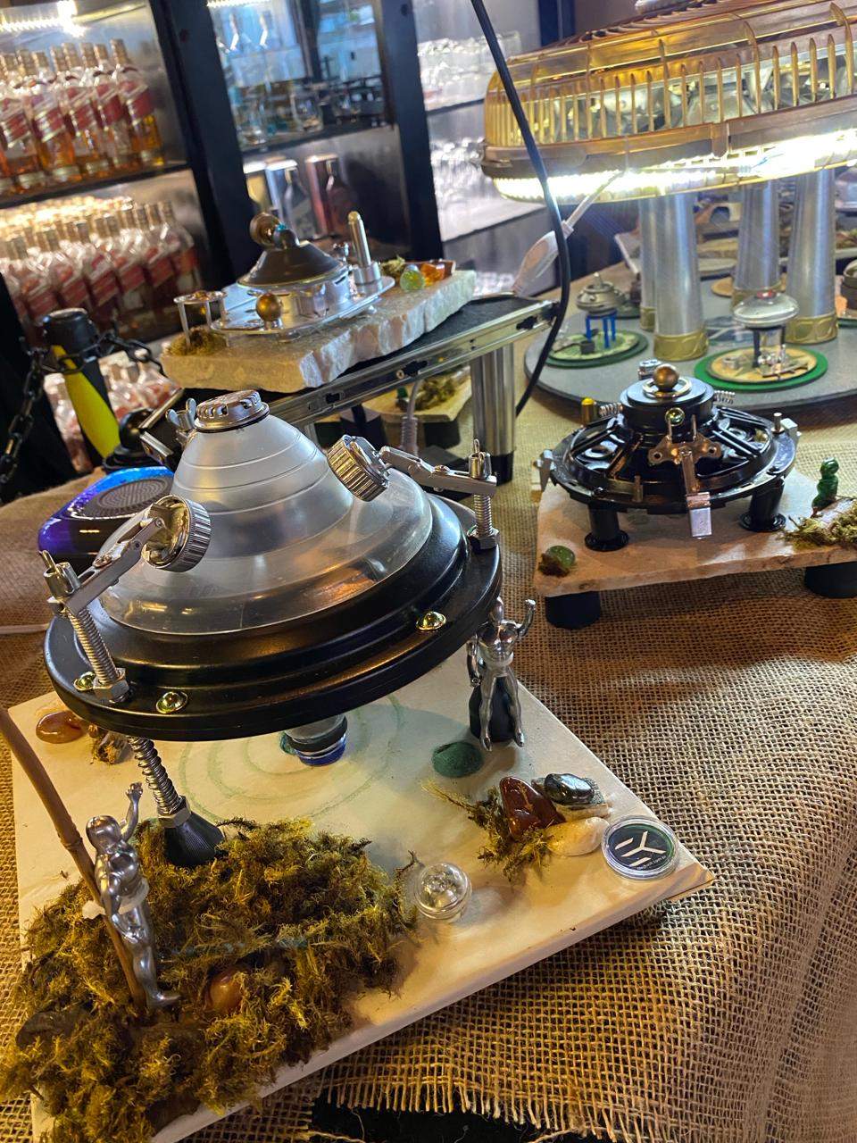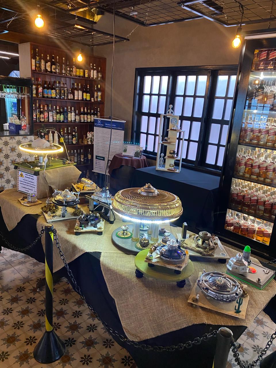 Até o dia 29/02, a Água Doce Cachaçaria de Varginha recebe a 1ª Mostra Ufológica em Espaço Gourmet. A iniciativa está sendo realizada pela Starkush e tem como objetivo prestigiar o 28º aniversário do caso do ET de Varginha. A Starkush desenvolve peças para decoração de interiores com uma temática retro futurista, com os formatos Sci-fi, Steampunk, Art Deco, Vintage, Post Apocalyptic, Ciberpunk, Dieselpunk, entre outros. De acordo com Tony Ferrari, proprietário da Starkush, parte do acervo artístico está na Água Doce para o público apreciar esse trabalho que oferece uma visão ampliada sobre a importância da sociedade em buscar soluções viáveis para o uso de resíduos sólidos, além do incentivo à cultura ufológica. “A iniciativa se deu após o proprietário da Água Doce, André Yuki, visitar nosso estande na 1ª Feira Ufológica de Varginha e vislumbrar a possibilidade de enaltecer a data comemorativa. Conciliamos o lounge do espaço gourmet com a proposta do cliente entrar em contato direto com nossa arte”, explicou Tony