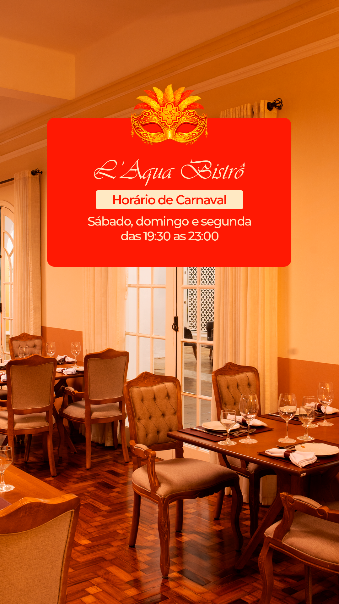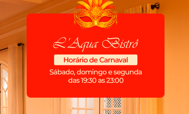 O L’Aqua Bistrô, no Hotel Glória, será uma das opções gastronômicas para quem estiver em Caxambu durante o Carnaval. O espaço funcionará no sábado, domingo e segunda-feira, sempre a partir das 19h, oferecendo ao público um cardápio que propõe uma releitura contemporânea da tradicional culinária mineira.