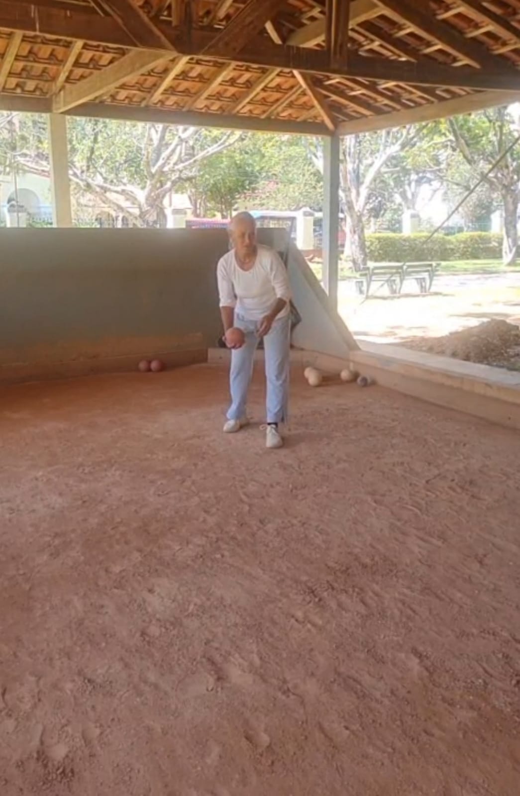 João Ronaldo Castro Rodrigues, de 16 anos e jogador de bocha da quadra de São Lourenço, em visita a quadra de Caxambu no último domingo, 23 de março