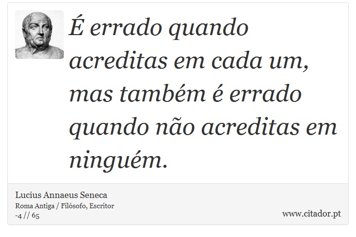 É errado quando acreditas em cada um, mas também é errado quando não acreditas em ninguém. (Seneca)
