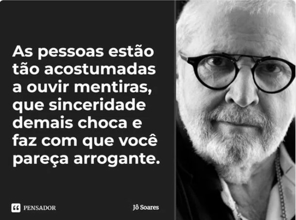 “As pessoas estão tão acostumadas a ouvir mentiras, que sinceridade demais choca e faz com que você pareça arrogante”.