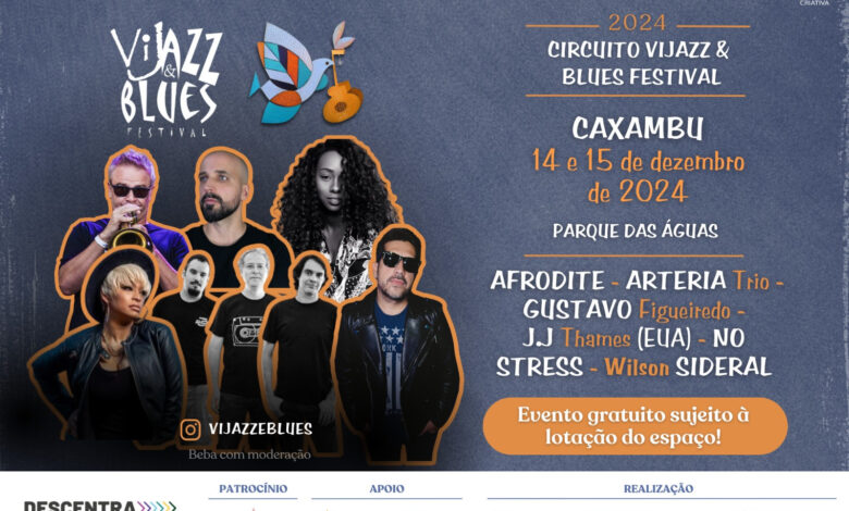 O ViJazz & Blues Festival acontece em Caxambu neste fim de semana, dias 14 e 15 de dezembro, no Parque das Águas. O evento, com entrada gratuita, trará nomes importantes do jazz e do blues para apresentações abertas ao público.